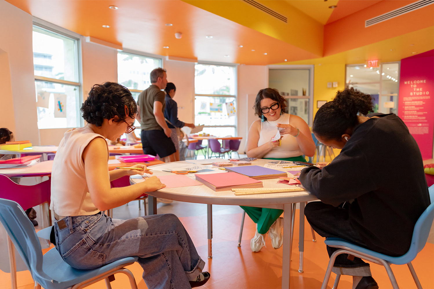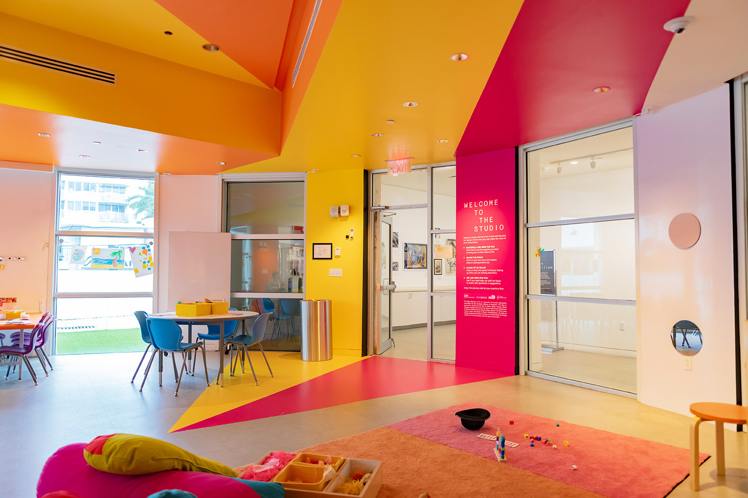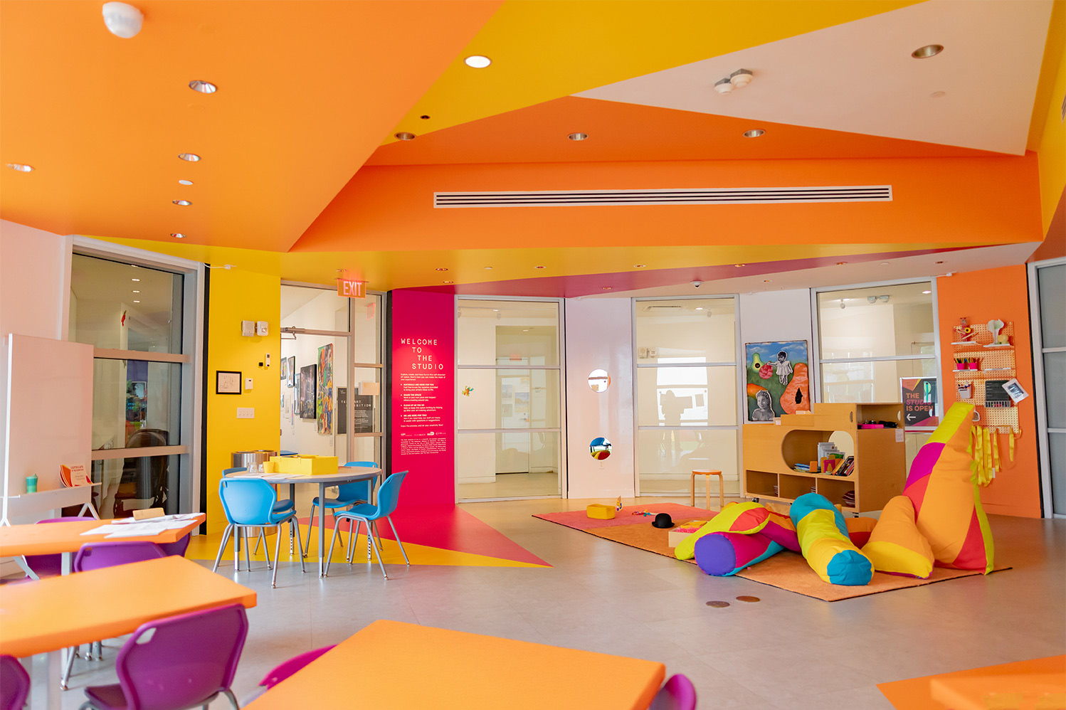 Created a bold and angular interior design for The Studio at The Bass, a center dedicated to museum guests for self-guided art activities.